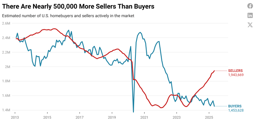 One of the most significant shifts in 2025 is the dramatic change in housing supply. For the first time in recent history, there are far more active sellers than buyers—an estimated 33.7% more.